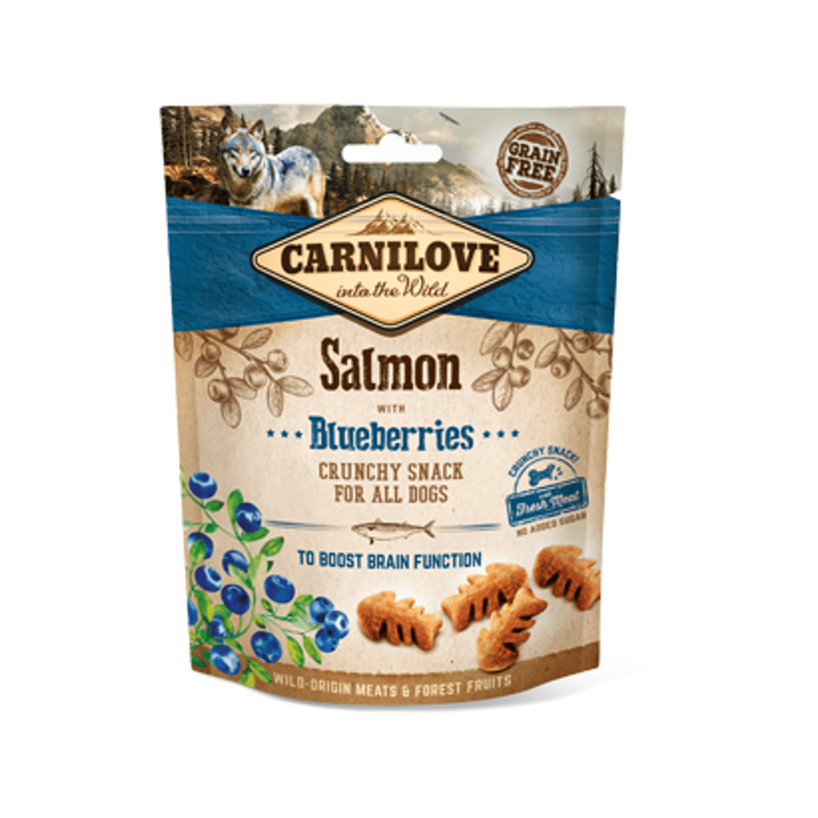 Economia de 0,49 €Carnilove Dog Crunchy Snack Salmon & Blueberries para cães de todas as raças. Com mirtilos, fonte natural de antioxidantes, para a saúde do coração